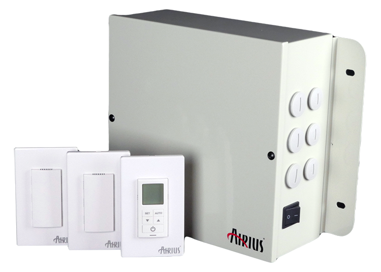The Airius DeltaT controls allow for 6 modes of quiet speed control by utilizing an autotransformer to eliminate the hum often associated with TRIAC type controls. Packages available for AC or EC motor options.
