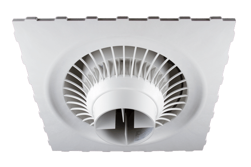 The Suspended Ceiling Series drops into a standard 2-foot by 2-foot acoustic ceiling tile. After wiring the electrical, the entire fan unit can be installed quickly and easily. A dome over the top of the fan ensures that air below the plenum is continuously mixed. Additional low voltage wiring may need to be installed for control of an EC motor or eliminated with a wireless control option.